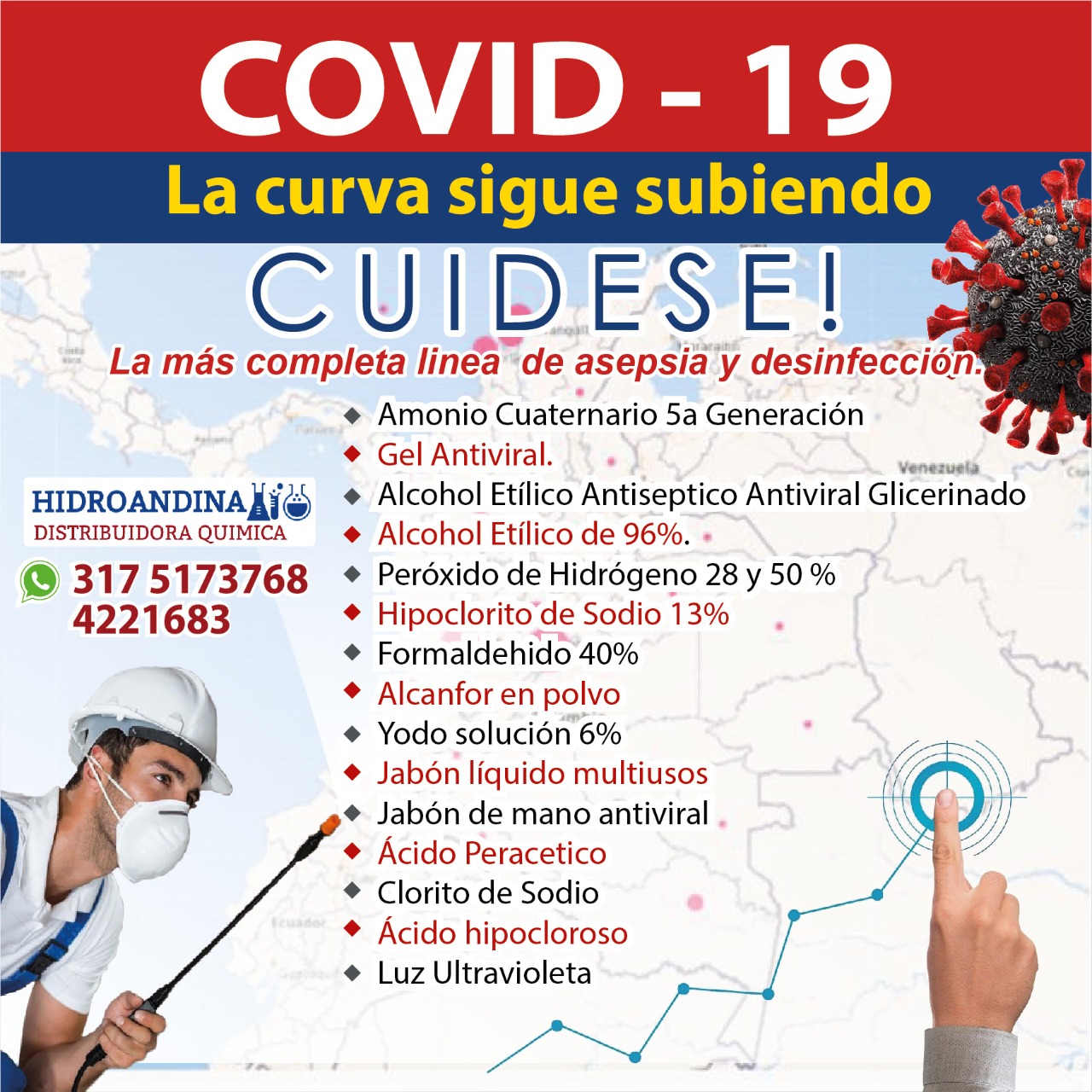 HIDROANDINA es una empresa comercializadora de Productos Químicos al por mayor y detal, que de acuerdo con el objeto social que fundamenta la conformación de su sociedad; hace presencia en las diferentes actividades de la vida comercial, industrial y agrícola en el caribe colombiano.